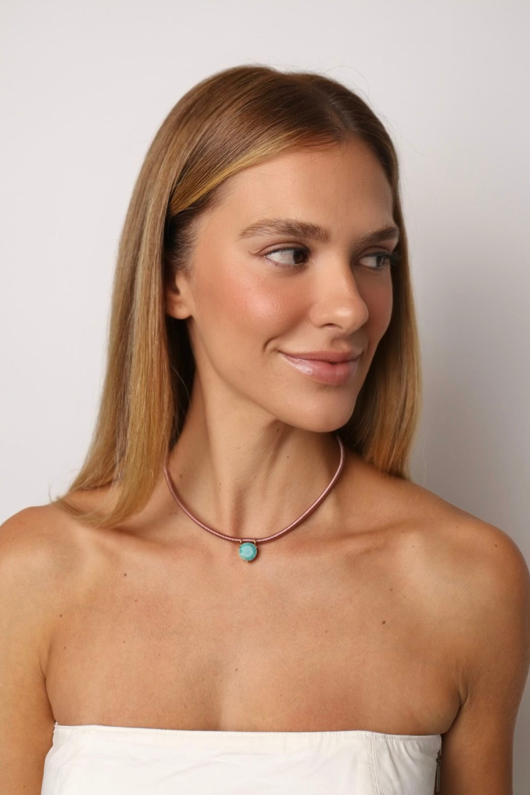 COLAR FIO DE SEDA ROSÉ PEDRA AMAZONITA