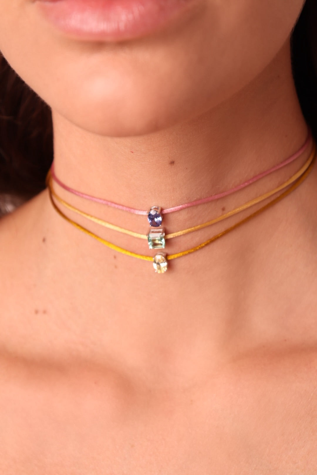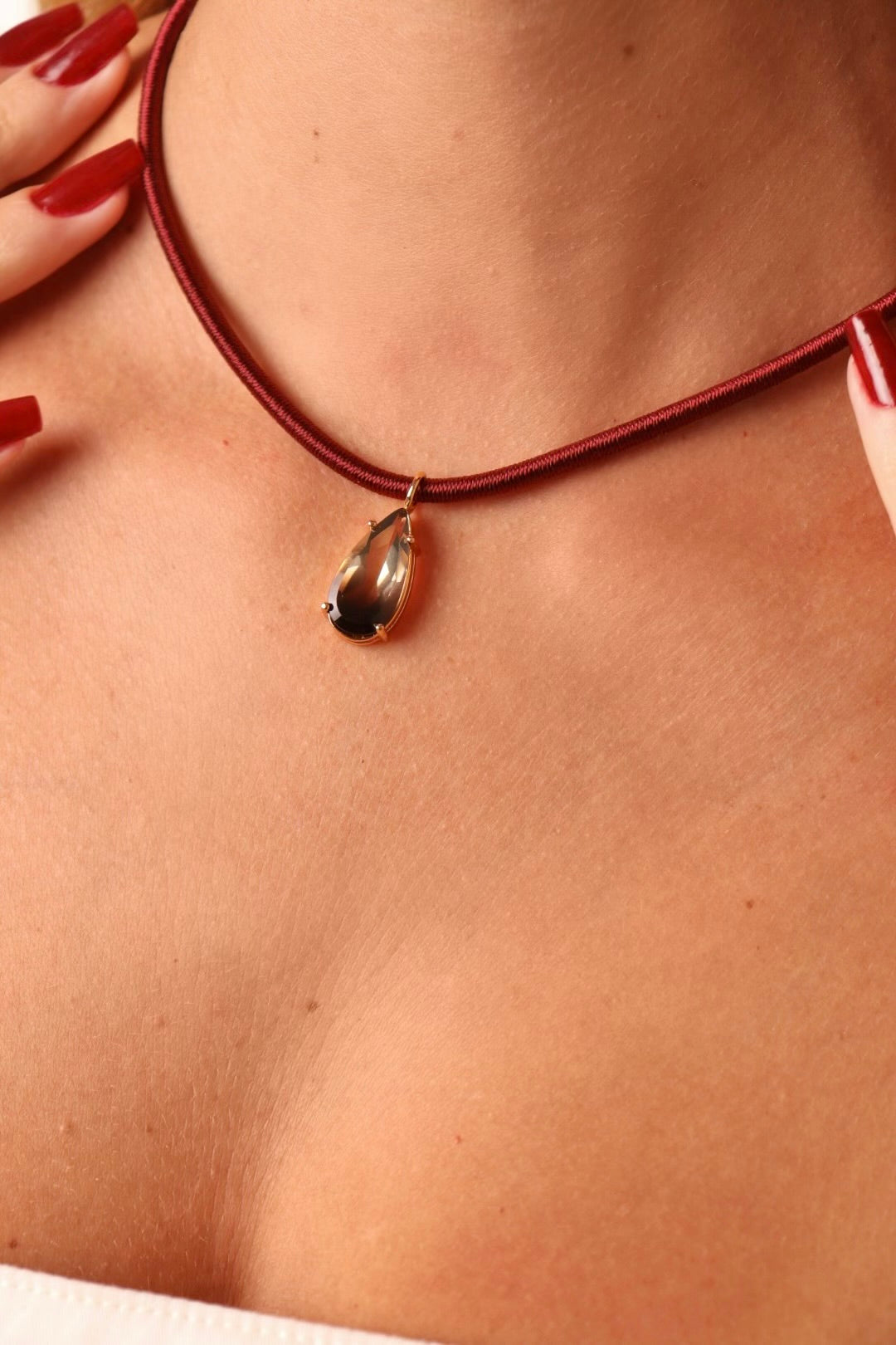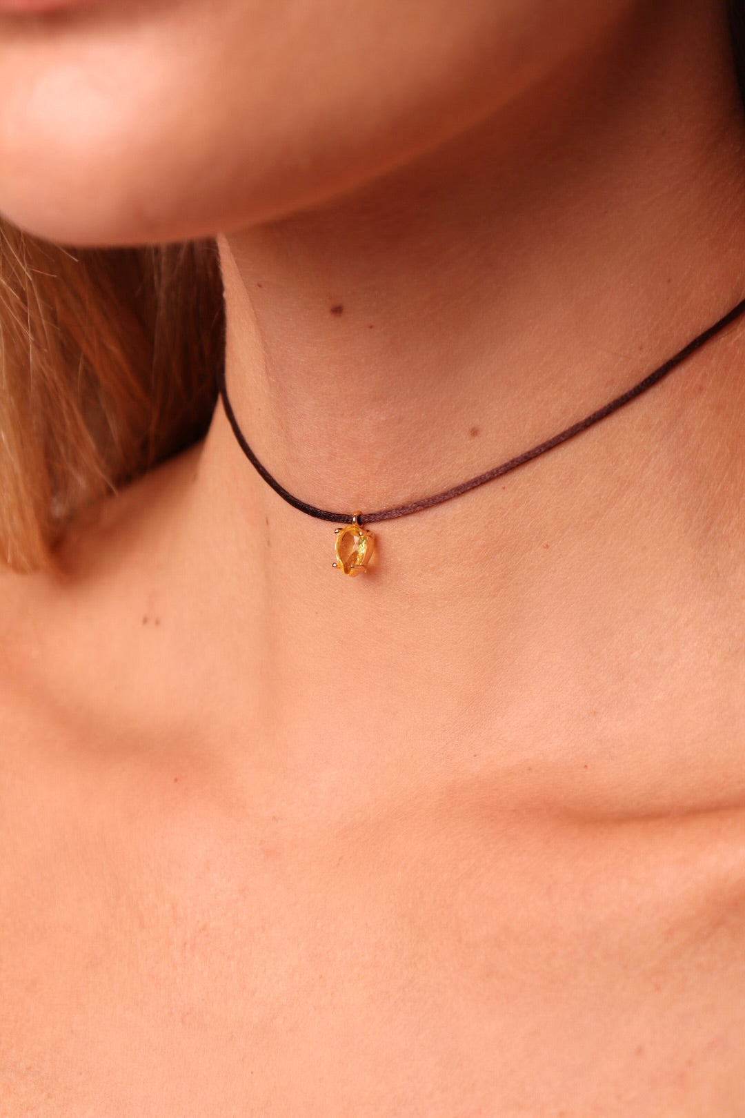 CHOKER FIO DE SEDA COM GOTA AMARELA