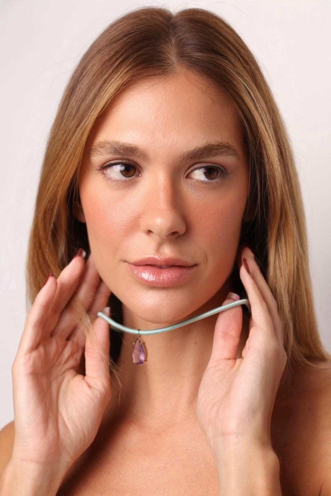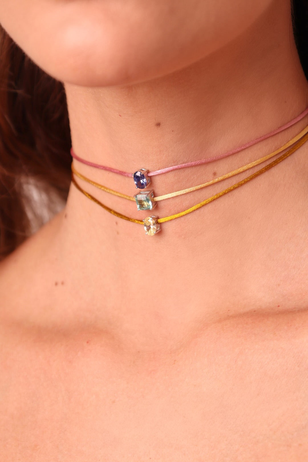 COLAR FIO DE SEDA PEDRA AMETISTA (2 CORES)